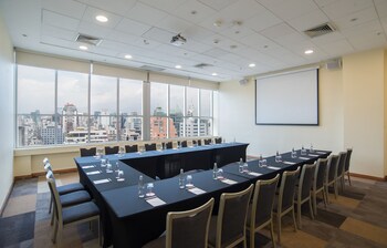 Tendrás conexión a Internet de alta velocidad por cable (gratuita), centro de negocios abierto las 24 horas y servicio de tintorería a tu disposición. ¿Estás organizando un evento en Santiago? En este hotel tienes a tu disposición 135 metros cuadrados de espacio con centro de conferencias y salas de reuniones. Pagando un pequeño suplemento podrás aprovechar prestaciones como servicio de transporte al aeropuerto (ida y vuelta) a petición y aparcamiento sin asistencia gratuito.